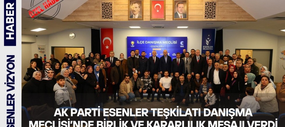 Samimi ve verimli bir ortamda gerçekleşen Danışma Meclisi Toplantısı, teşkilat mensuplarının görüş ve önerilerinin paylaşılmasıyla sona ererken; program, AK Parti Esenler teşkilatının birlik, beraberlik ve kararlılık mesajlarıyla dikkat çekti.