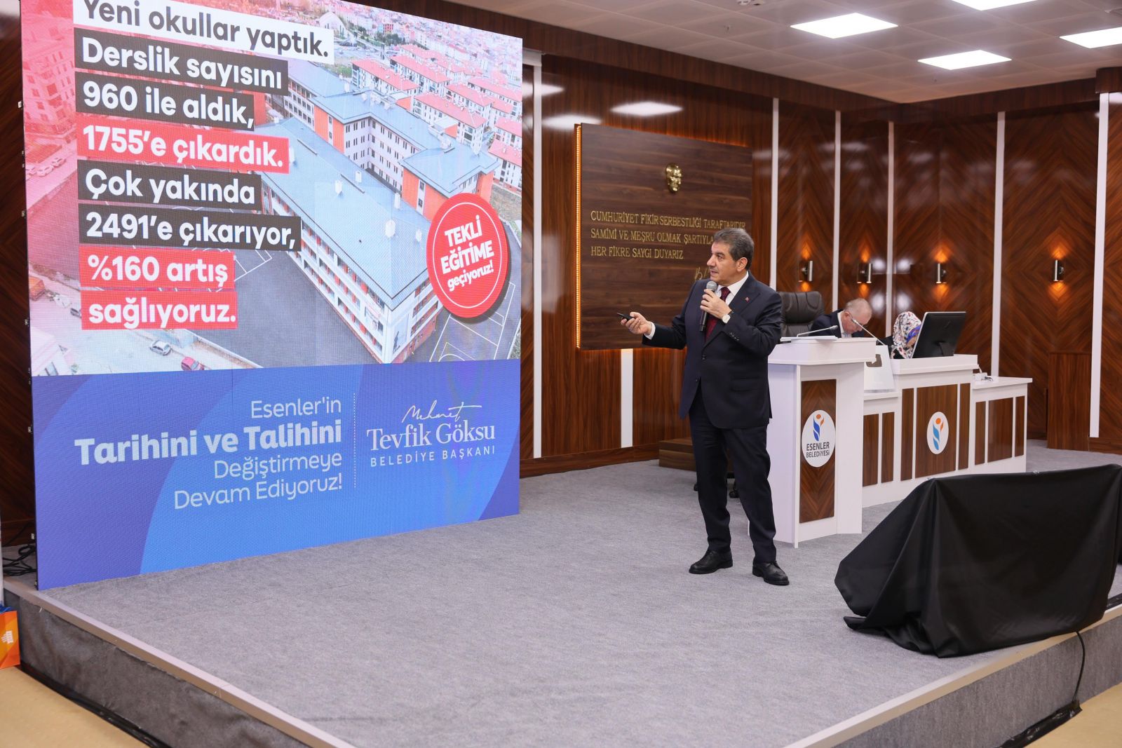 Başkan Göksu konuşmasında, “İmkânsız denileni başaran bir iradeyle, yeni bir şehir ve yeni bir gelecek inşa ettik. Güveni büyüttük, umudu çoğalttık, ekonomik ve sosyal değeri artırdık. Kültürel kapasitesi yüksek, şehircilik bilinci güçlü bir Esenler’i adım adım yeniden kurduk. Esenler’imizin tarihini de talihini de değiştirdik elhamdülillah.” ifadelerini kullandı.