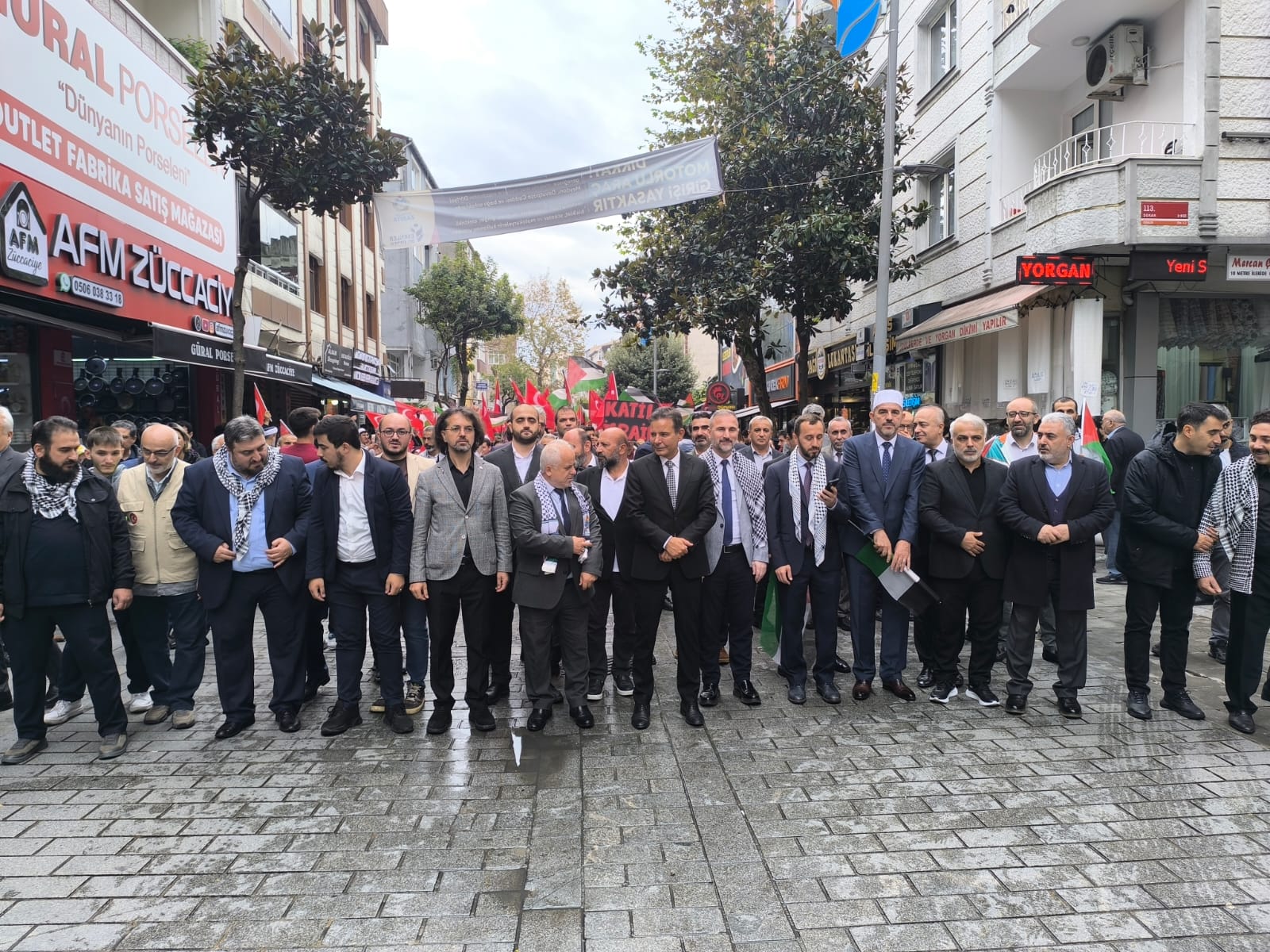 “Bugün burada, Gazze ve Kudüs’ün özgürlüğü için bir ses olmak, insanlığın vicdanına seslenmek için buluştuk. Bu zulüm sona erene kadar durmadan, yorulmadan, hakikat için mücadele etmeye devam edeceğiz. Çünkü biz inanıyoruz ki; Gazze özgür olmadan, hiçbirimiz gerçekten özgür değiliz.”