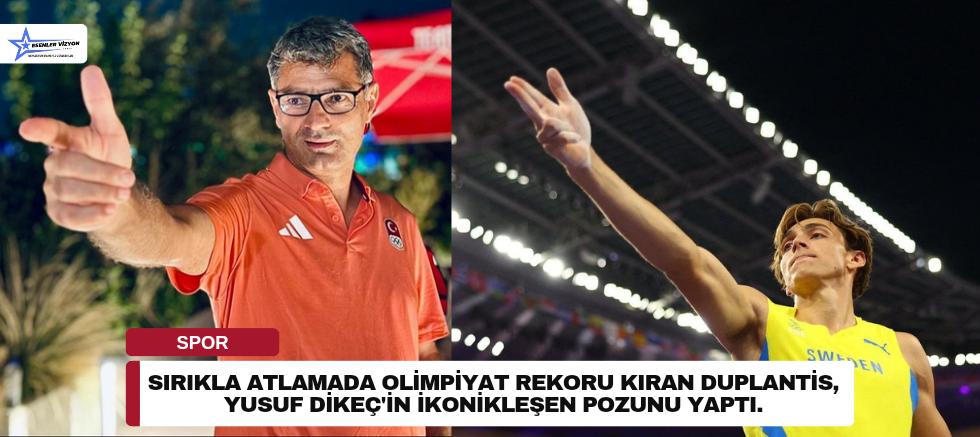 Sırıkla atlamada olimpiyat rekoru kıran Duplantis, Yusuf Dikeç'in ikonikleşen pozunu yaptı.