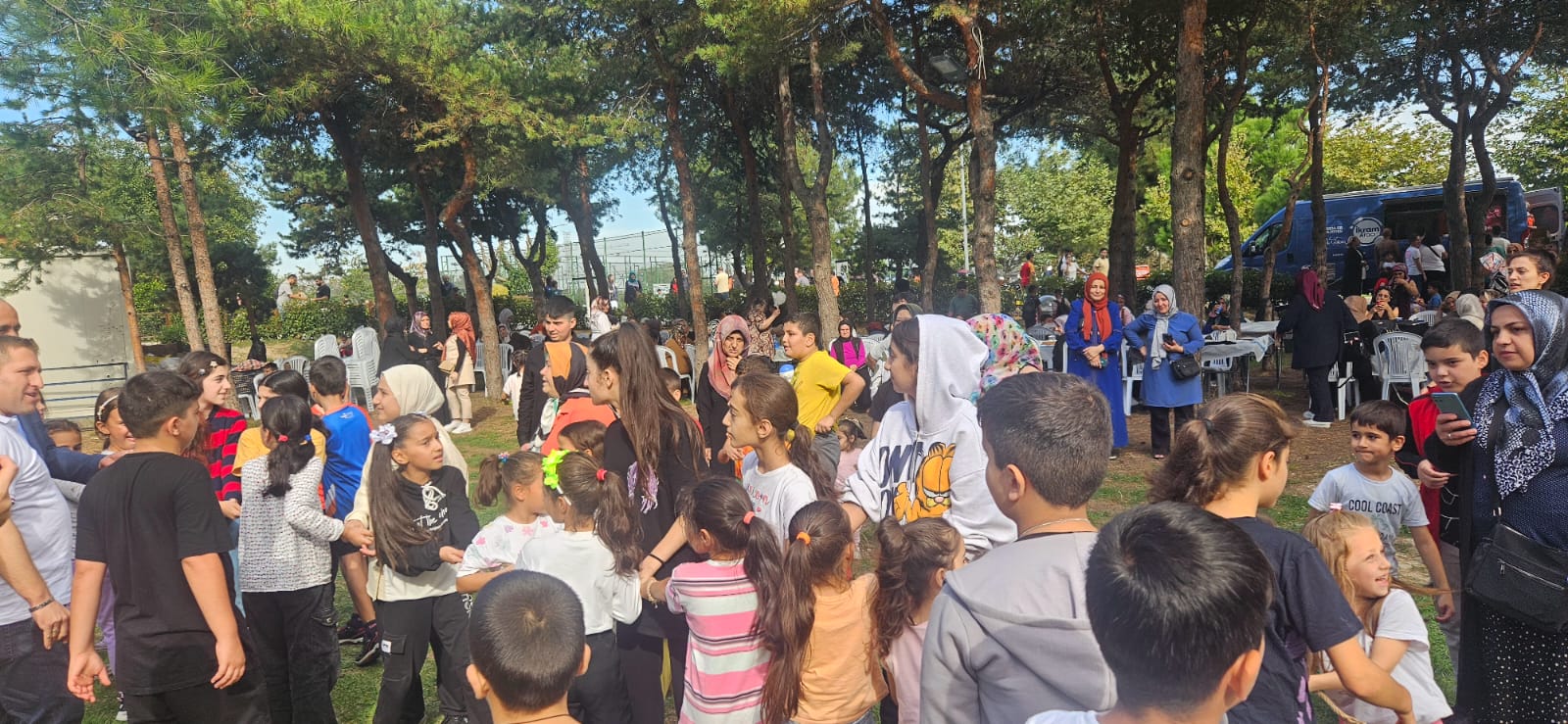 Esenler 15 Temmuz Millet Bahcesinde düzenlenen programda çocuklar halat çekme yarışı, çuval yarışı, sandalye kapmaca ve yumurta taşıma yarışması gibi birbirinden eglenceli oyunlarla çok keyifli vakit geçirdiler.